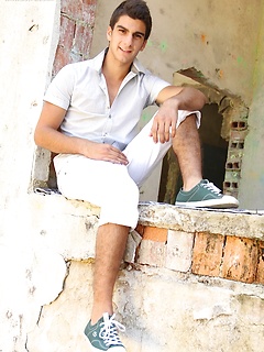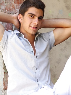 Athletic stud Maxim Moira strips butt naked outdoors.