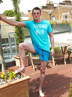 Lean Footballer Nate Enjoys Showing off in the Sun Shine - A Very Hard Uncut Cock & Hair Free Hole!