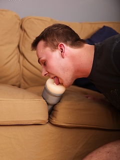 Sidney is fucking fleshlight when Chose comes in to fuck.