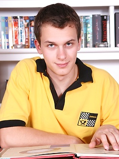 Alexander takes study break and strokes his cock on the table.