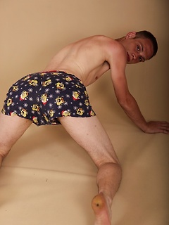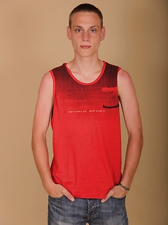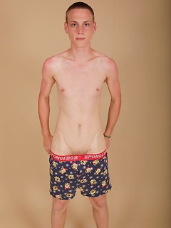 Tall twink Franky busts a massive nut over his stomach.