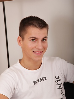 Fresh faced Jack busts a nut onto his hard stomach.
