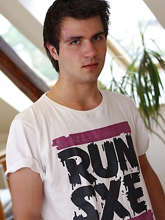 Sexy Justin Walker busts a nut over his hairy stomach.