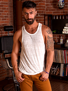 Adam Ramzi gets a trim and some ass from Mitch Vaughn in the barbers chair
