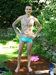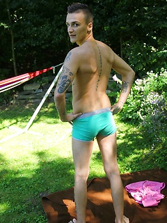 Dom Ully strips and masturbates out in the backyard.