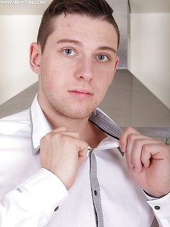 Gorgeous Aron Ros masturbating on the kitchen counter.