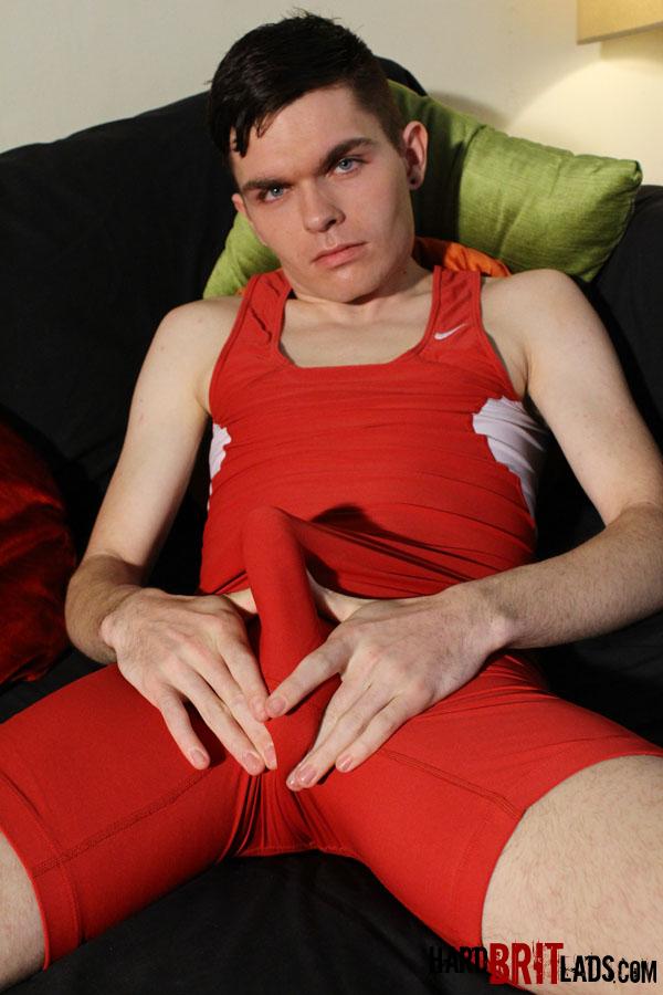 Brunette twink jerking off dick