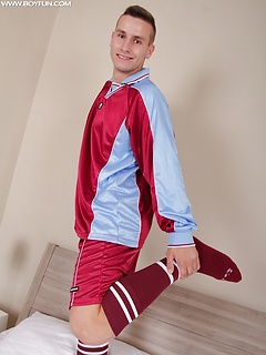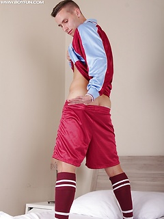 Kody Dunn strokes his hard cock after soccer practice.