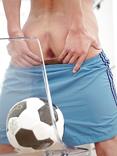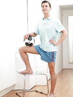 Jace Reed strokes his uncut cock after practice.