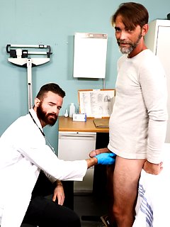 Classic Blue Balls. Hot mature hunks Joe Parker and Dr. Brendan fucking in examin room