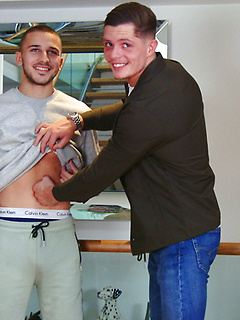 Young Straight & Muscular Stud Logan Wanks his 1st Man & it's Jack's Thick Uncut Cock